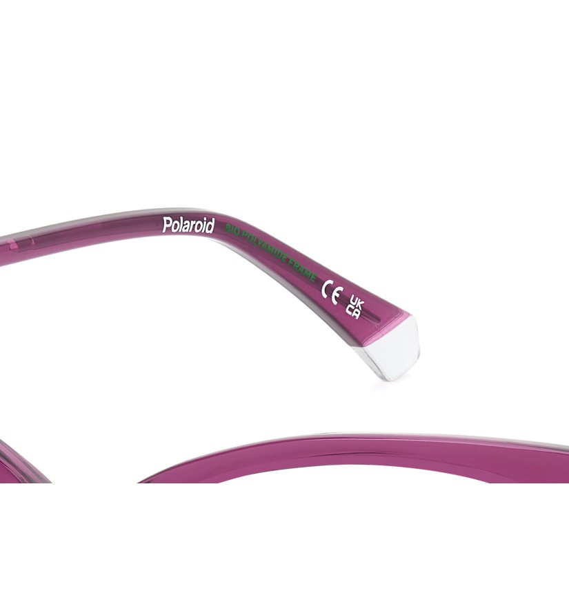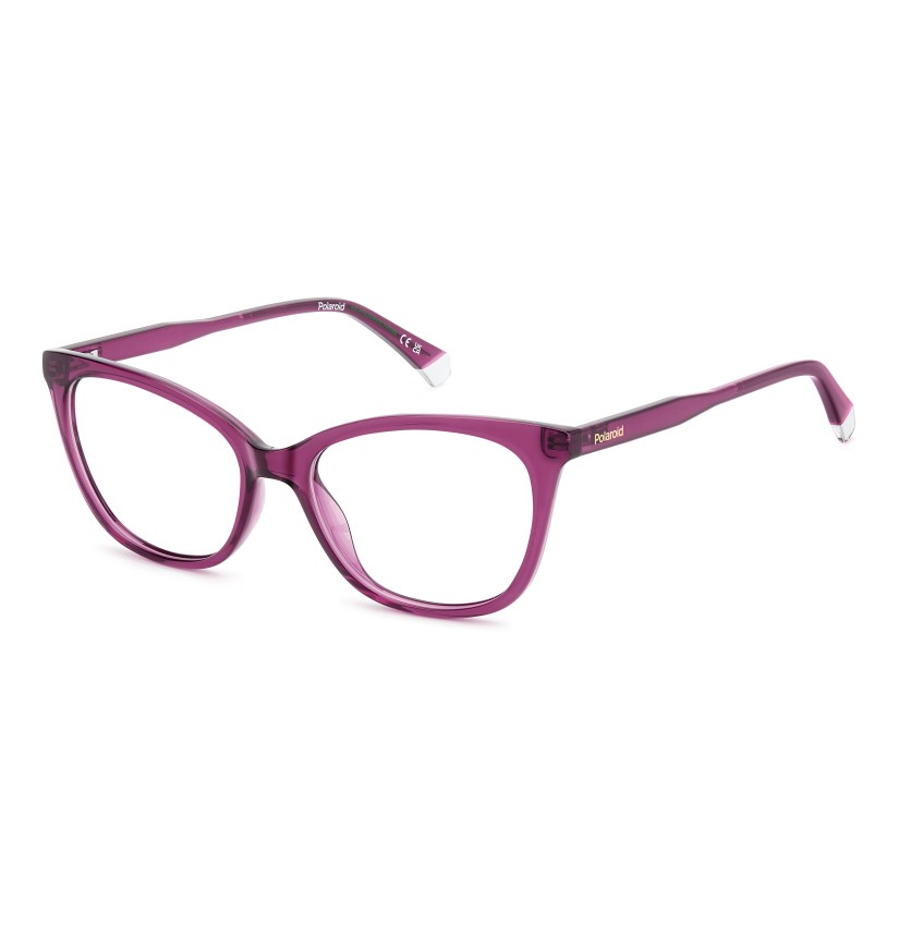 These women’s Polaroid eyeglasses are timeless thanks to their essential style. The cat-eye front is simple and elegant and the slender lines of the structure ensure a lightweight fit. This style comes in black, havana, and transparent seasonal hues. Every colourway has clear end tips, a playful element that’s unmistakably Polaroid.