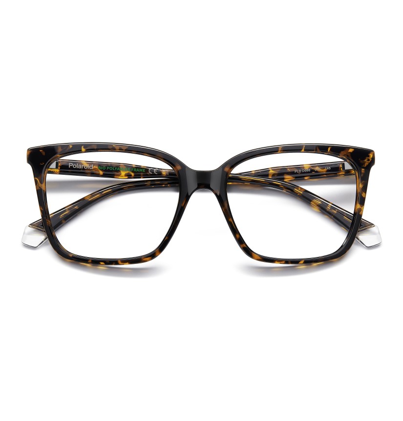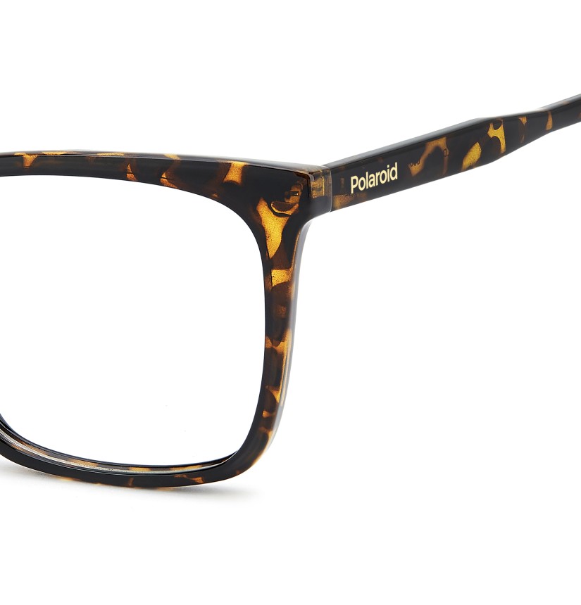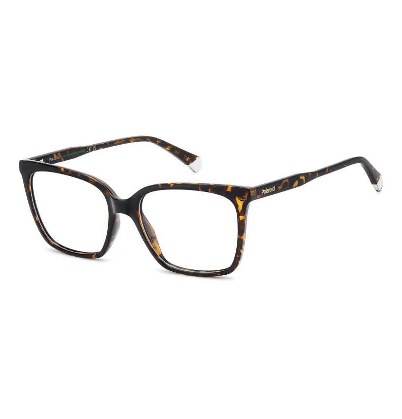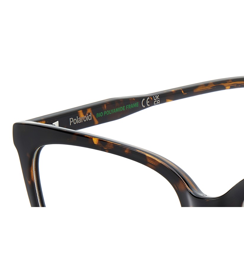 These women's eyeglasses by Polaroid guarantee of a sophisticated yet never boring look. Their design balances classic aesthetics and everyday practicality. They're made of eco-polyamide, which is durable, lightweight and environmentally friendly. Polaroid has added its unmistakable details: the brand name on the temples and the iconic end tips with a clear insert. All that’s left to do is choose a favourite hue from the opaque and transparent colourways.