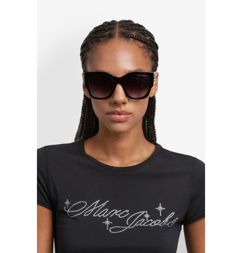 Marc Jacobs' "The Items" eyewear is iconic by nature. These sunglasses channel the brand’s signature aesthetic through a refined, oversized silhouette. Crafted from acetate, they feature three-dimensional "THE SUNGLASSES" lettering printed on the extra-wide temples – a bold nod to Marc Jacobs' style codes. This distinctive logo design is inspired by the cult-favourite Sack, Duffle and Bucket bags and is available in timeless colour combinations to deliver a polished finish.
