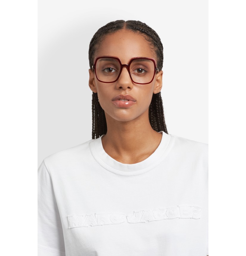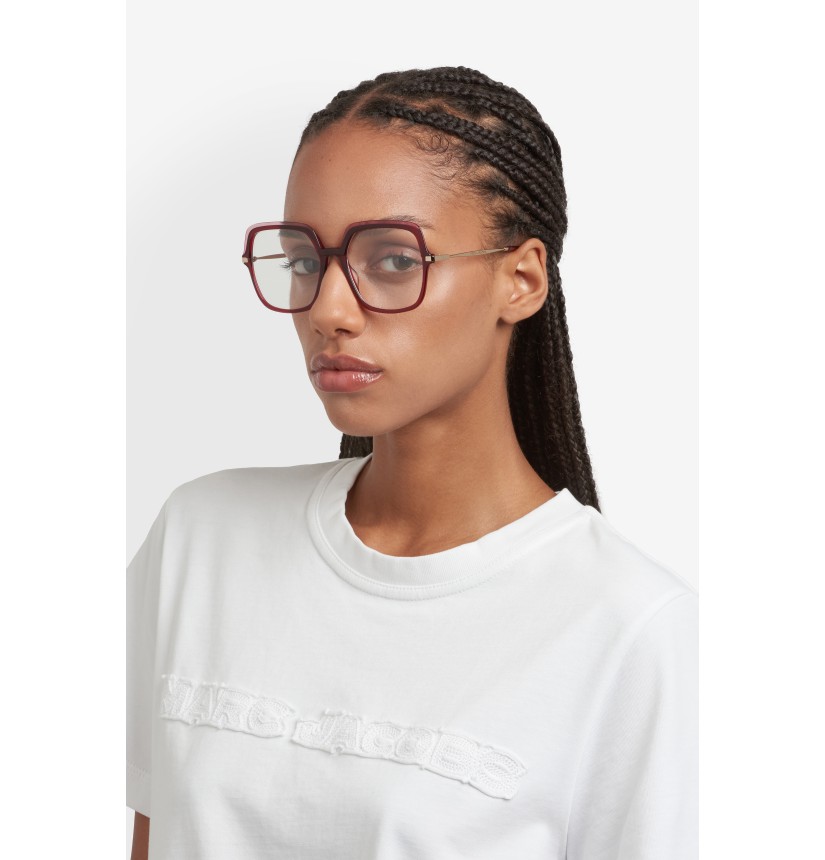 Elegantly oversized, these women's optical glasses by Marc Jacobs perfectly fuse style and wearability. The colourful acetate front makes a subtle yet bold statement, while the slim metal temples ensure lightness and comfort – they're finished with matching acetate end tips so they rest effortlessly behind the ear. The brand's signature logo lettering completes this refined design, balancing versatility with sophistication.
