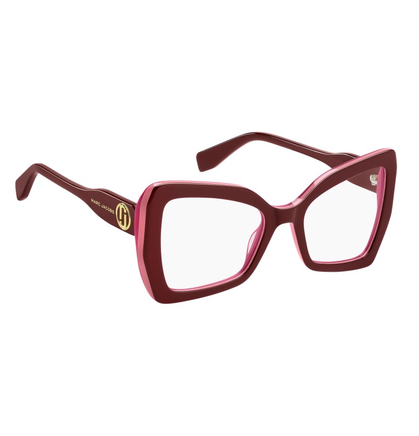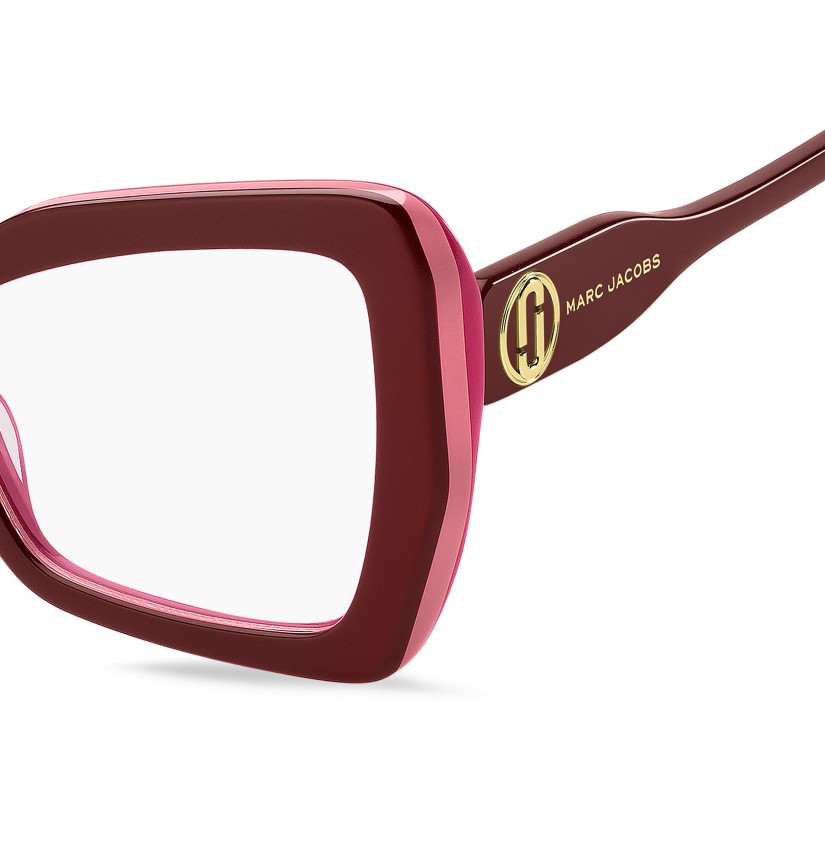 An eyewear line to turn to on repeat: the J Marc optical glasses are a bold expression of Marc Jacobs’ iconic style. The silhouette is crafted from bilayer acetate, they're expertly milled to reveal the tonal layers, creating a geometric shape-in-shape effect on the front. A shimmering metal interlocking J logo lends the temples a luminous touch. Elevated by colour-block designs, the curated palette imparts a polished and modern twist to signature brand elements.