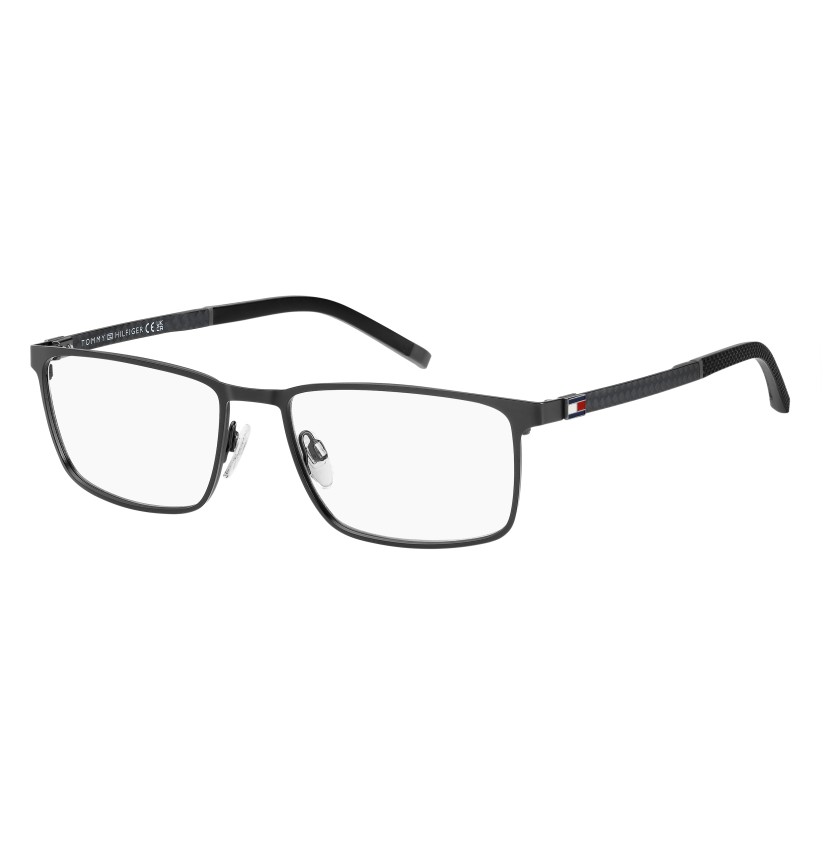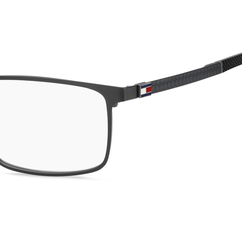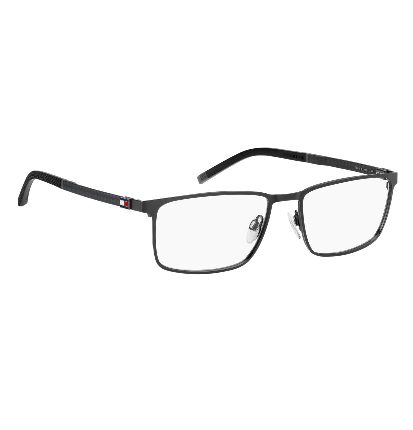In carbon fibre, these TOMMY HILFIGER eyeglasses represent truly evolved design and style. Easy to wear and versatile, characterised by the brand's original colourful details (like the unmistakable ribbon), these TOMMY HILFIGER eyeglasses are lightweight and comfortable. They adapt to any outfit and are recognisable by the metal and rubber details, and the rectangular shape: truly one of a kind.