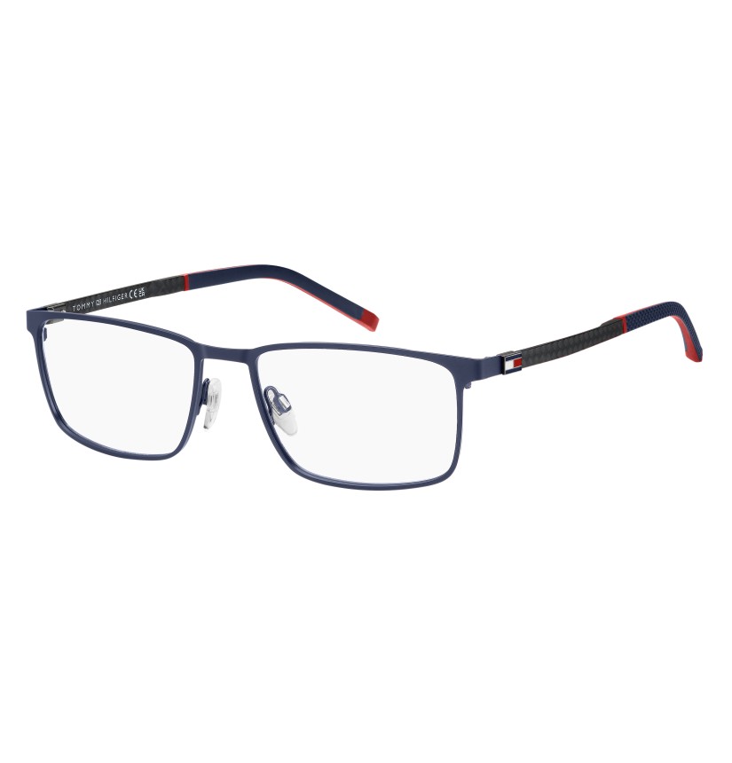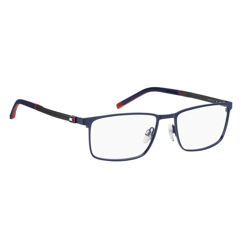 In carbon fibre, these TOMMY HILFIGER eyeglasses represent truly evolved design and style. Easy to wear and versatile, characterised by the brand's original colourful details (like the unmistakable ribbon), these TOMMY HILFIGER eyeglasses are lightweight and comfortable. They adapt to any outfit and are recognisable by the metal and rubber details, and the rectangular shape: truly one of a kind.