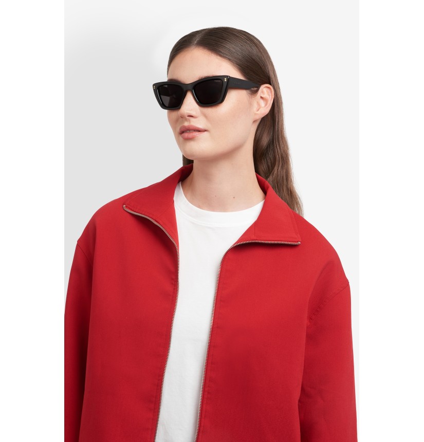 Playful irony is the defining characteristic of these Polaroid sunglasses for women. The cat-eye shape is sure to get noticed, with its bold yet light and comfortable proportions. The maxi temples are noteworthy thanks to their soft rubberised finish, completed by a raised Polaroid logo. This style can even hold prescription sun lenses. The result is a must-have accessory that puts personality first.