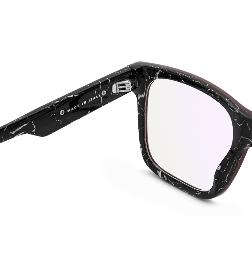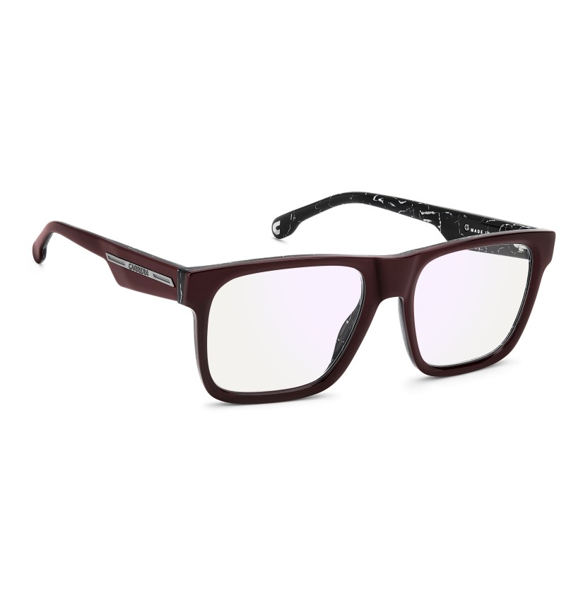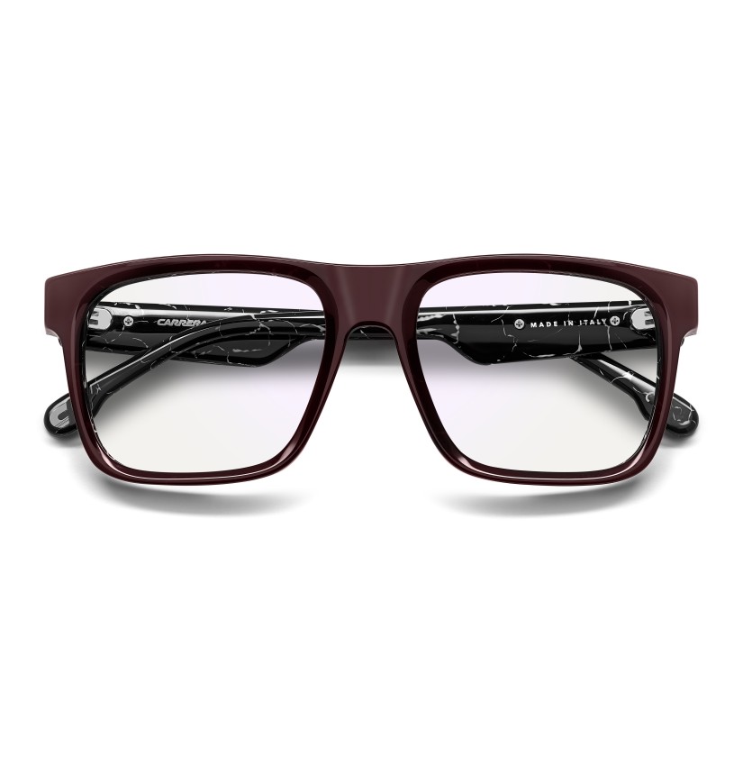 Crafted in Italy, these Carrera eyeglasses make it easy to elevate everyday looks. The square front suits any outfit, while the bold maxi temples add unique character. The metal plaque with the Carrera flag on the temples adds a finishing touch to the design. Standout colour options include a transparent version and one with marble-effect detailing on the inside.