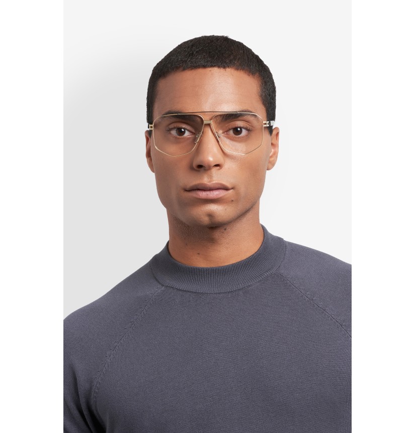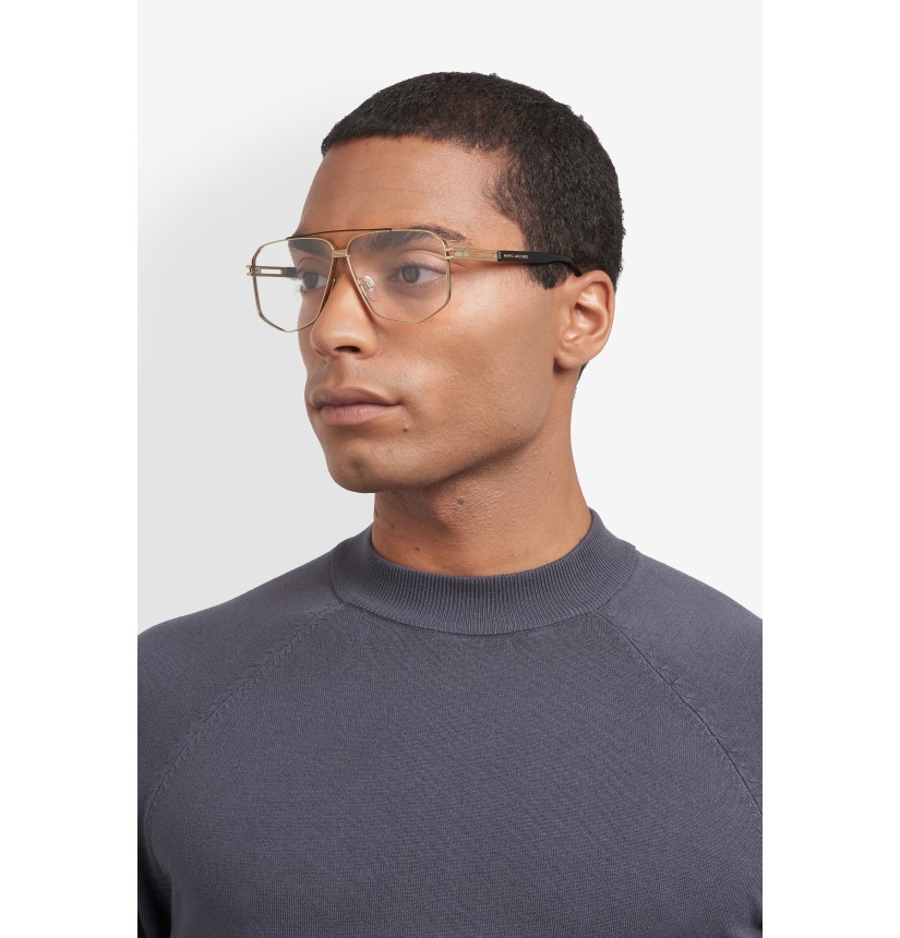 Designed to make a striking statement, Marc Jacobs' Premium men's eyewear collection showcases fine materials and distinctive detailing. Offering a distinctive shape in titanium – prized for its lightness and durability – these optical glasses present a bold sense of style that's so quintessentially Marc Jacobs. They are detailed with an aviator-inspired double bridge, open temple, and a subtle inlet logo on the long acetate tips, reinforcing the brand's legacy of fashion-forward designs.