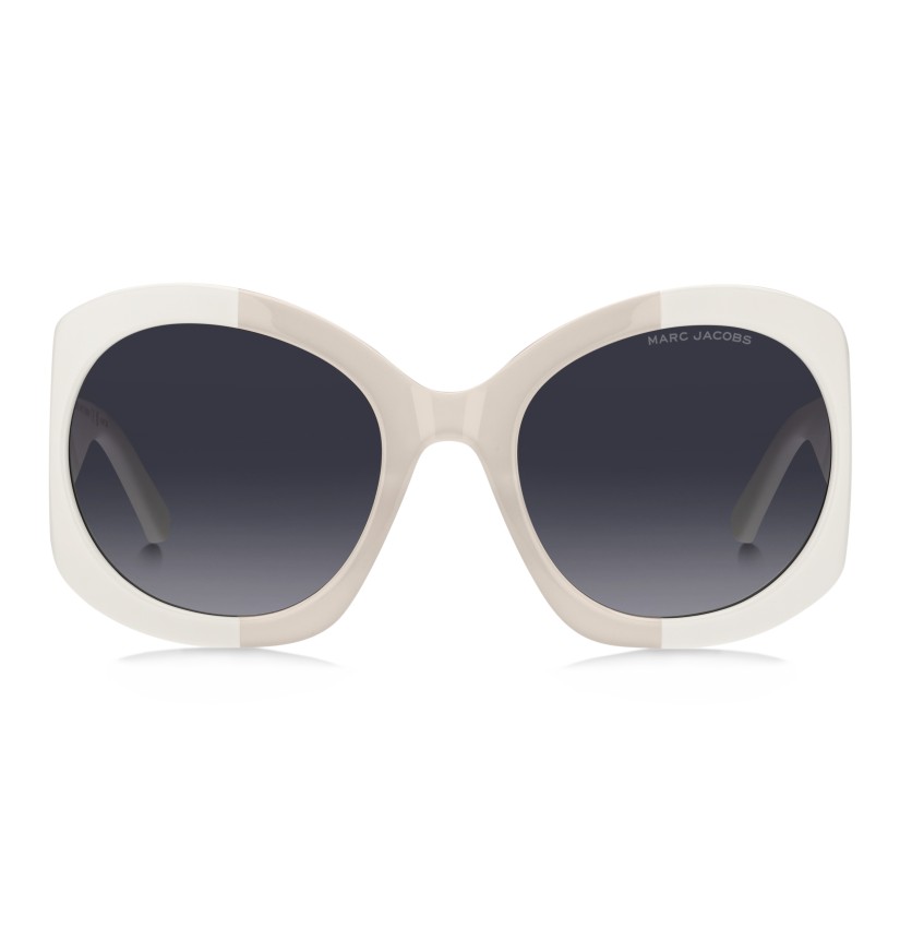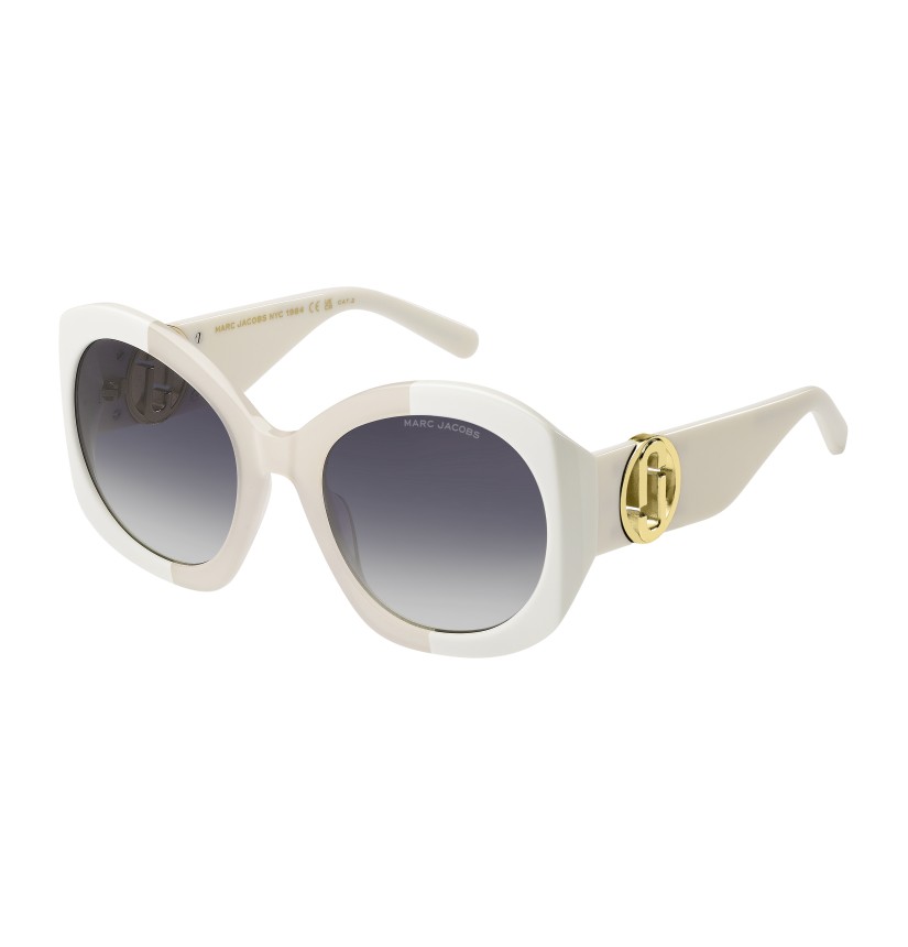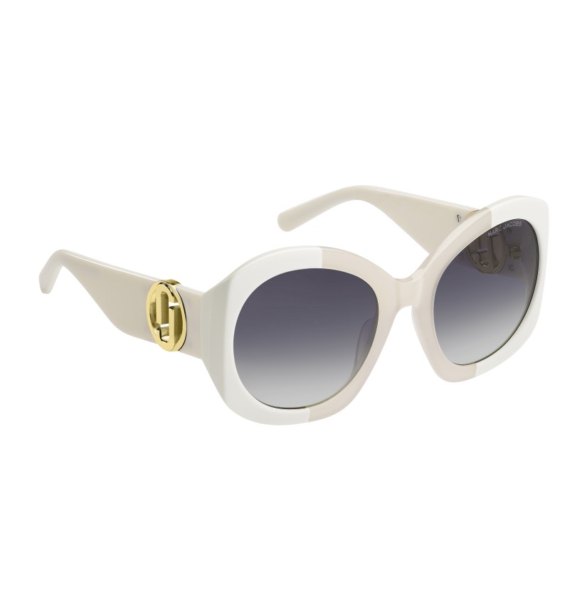 Spotlighting bold, modern shapes and the brand's signature embellishments, Marc Jacobs' See Through J Marc women's eyewear collection oozes cool-girl energy. These sunglasses are crafted from glossy acetate and feature wide, sculptural temples, amplified by iconic double JJ metal details – here, in an oversized see-through variation. Notice the sophisticated lug construction and the brand's logo lettering on the left lens.
