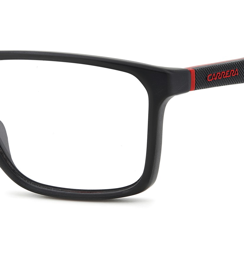 Faithful to Carrera style, these Made in Italy eyeglasses are a masterpiece of design and craftsmanship. The frames with a flat topline are exalted by a plaque with the Carrera flag and the iconic ‘C’, in a strategic and innovative horizontal position. The sculpted temples with a prominent logo are noteworthy. They're glasses to wear without hesitation because they're equipped with lenses that block blue light, a must-have for time spent in front of a screen.