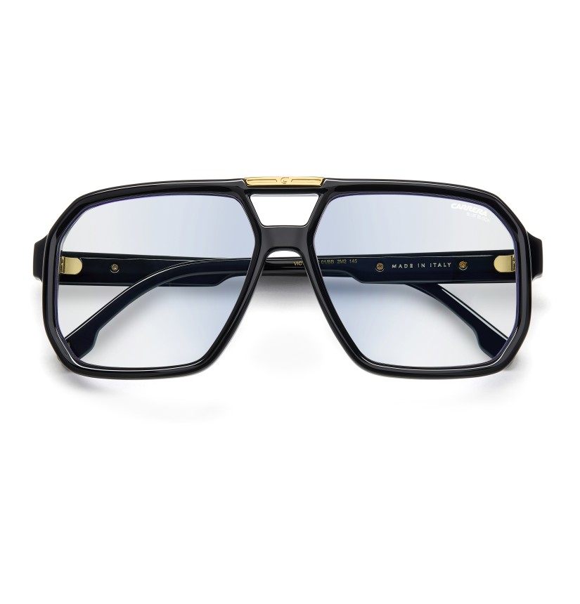 You can’t go wrong with these Carrera sunglasses: bold aesthetics and lightweight materials embody uncompromising style. Anything but boring, the double-bridge front is noteworthy, trimmed by an embossed metal ‘C’ near the temples. The lightweight acetate front is as slim and compact as can be, while the fin temples are in stainless steel. Lens options include polarized or mirrored. These glasses can be fitted with prescription lenses.