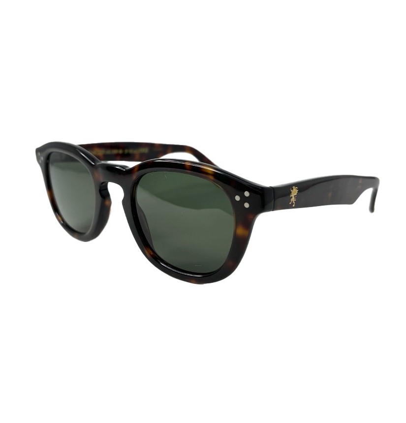Occhiale elegante havana, con dettaglio sull'asta del grifone color oro placcato, disponibile nella versione da sole oppure con lenti graduate da da vista sole, chiare o fotocromatiche (che si adattano alla luce).