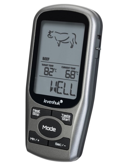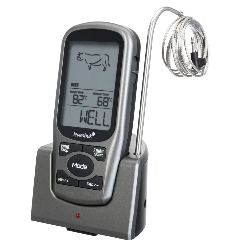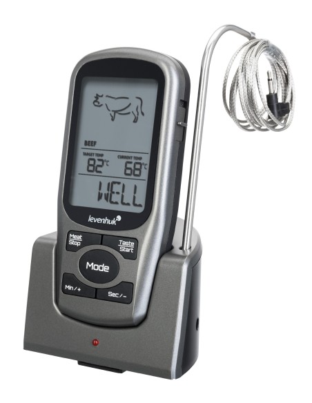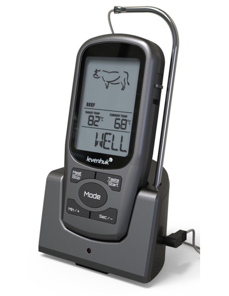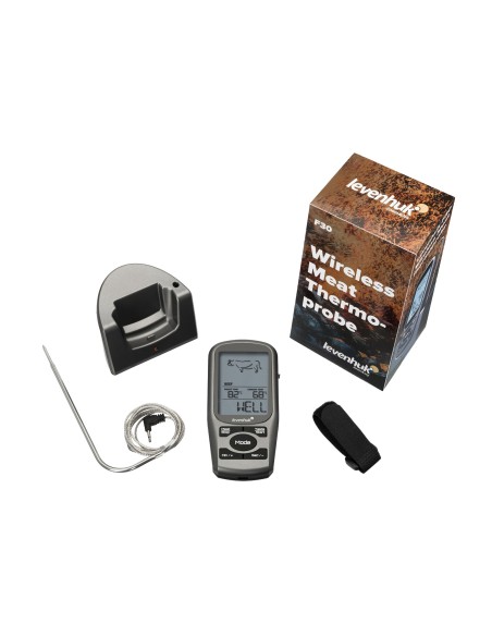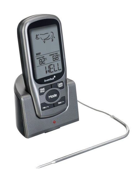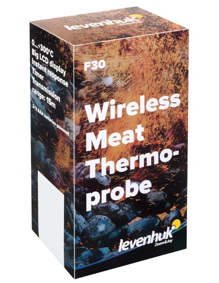 Levenhuk F30 è un termometro a sonda wireless progettato specificatamente per la massima precisione nella misura della temperatura di cottura delle carni. La sua funzionalità più interessante è l’opzione di scelta del tipo di carne e del grado di cottura desiderato. Ciò rende possibile ottenere un piatto cucinato alla perfezione con il minimo sforzo. Questo strumento è anche dotato di timer e di una funzione di notifica tramite cicalino per quando si raggiunge la temperatura limite.