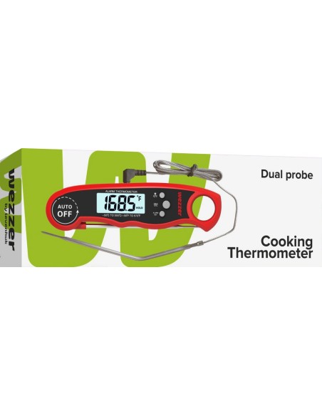 Grazie al termometro Levenhuk Wezzer Cook MT50, creare dei capolavori in cucina diventerà sempre più semplice. Questo piccolo strumento è progettato per determinare la temperatura dei cibi in fase di cottura, in modo da poter seguire la ricetta alla lettera e ottenere pietanze più gustose. La sonda termica evita che il cibo risulti secco, una funzionalità particolarmente utile per la cottura in forno e la preparazione delle bistecche.