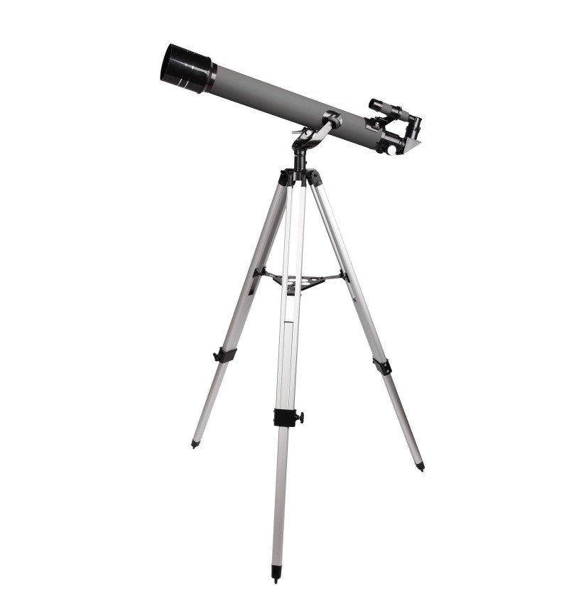 Questo telescopio si basa sullo schema ottico di un rifrattore acromatico. Le sue lenti sono realizzate in vetro. Le ottiche sono ricoperte con un trattamento antiriflesso, il che rende l’immagine riprodotta chiara e nitida nell’intero campo visivo. La montatura azimutale a forcella è dotata di una vite micrometrica sull’asse verticale, che consente di orientare con accuratezza il telescopio nella direzione dell’oggetto scelto. Il treppiede in alluminio è dotato di vassoio per accessori. L’altezza del treppiede è regolabile.